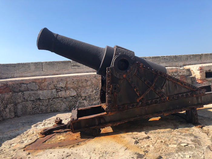 モロ要塞は、河口に作られた要塞で、ここから岸に近づいてきたり、河に入ろうとする船を警戒していたらしい。石造りの大きな建物で、青い空と白っぽい石壁が目に痛い。「このコントラストは、20年前くらいにエジプトで見た景色と同じだなー」と遠い記憶に想いをはせながら、中を見て回る。